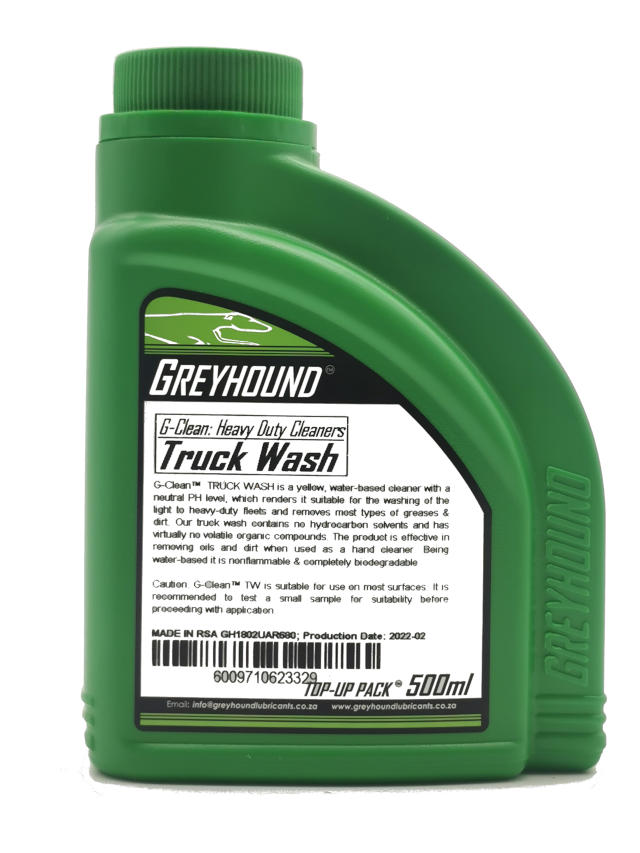 Dirty Jobs Fleet Wash Cleaner by Greyhound Lubricants is a highly concentrated, water-based automotive cleaning solution designed for mixed fleets, workshops and serious vehicle cleaning applications as well as general purpose degreaser. It effectively removes grease, mud, road grime, oil and heavy dirt while remaining non-caustic and biodegradable when used as directed. Suitable for cars, bakkies, trucks, buses, trailers and commercial fleets, this professional-grade cleaner delivers powerful results without damaging paintwork when properly diluted. It can be used for manual washing, pressure washers or foam applications.